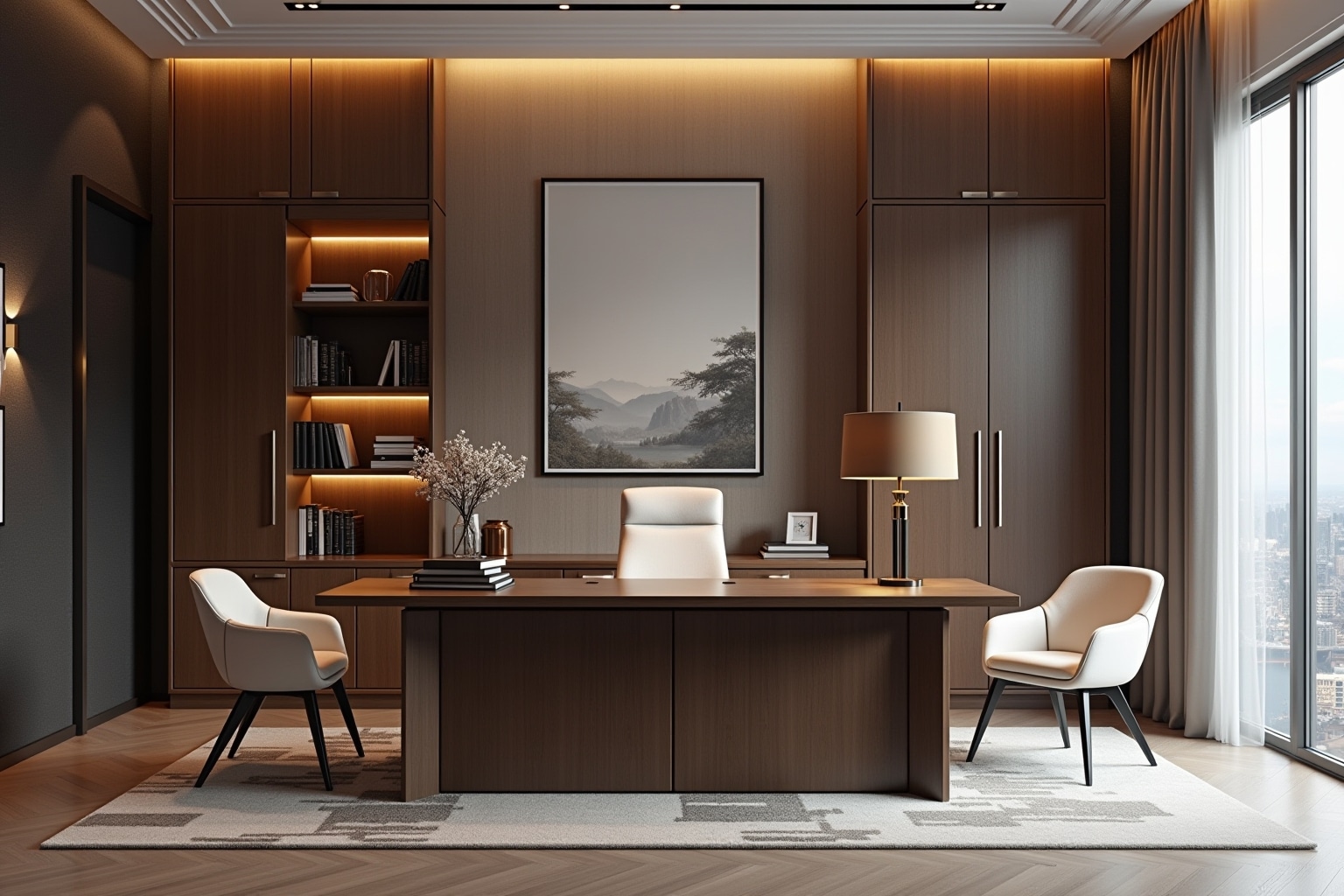 - Repräsentative Chefsessel mit hochwertigen Lederbezügen.